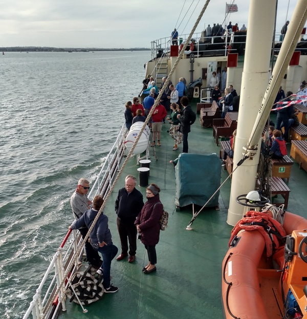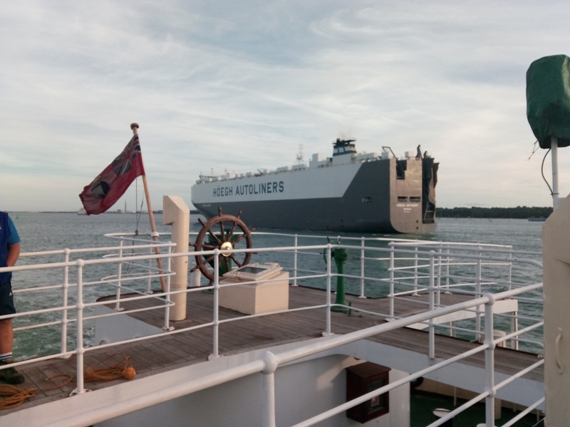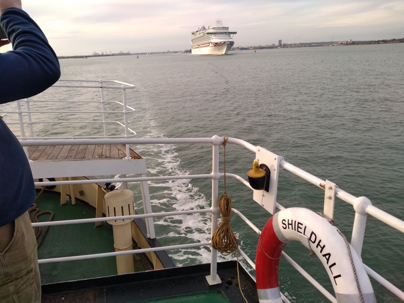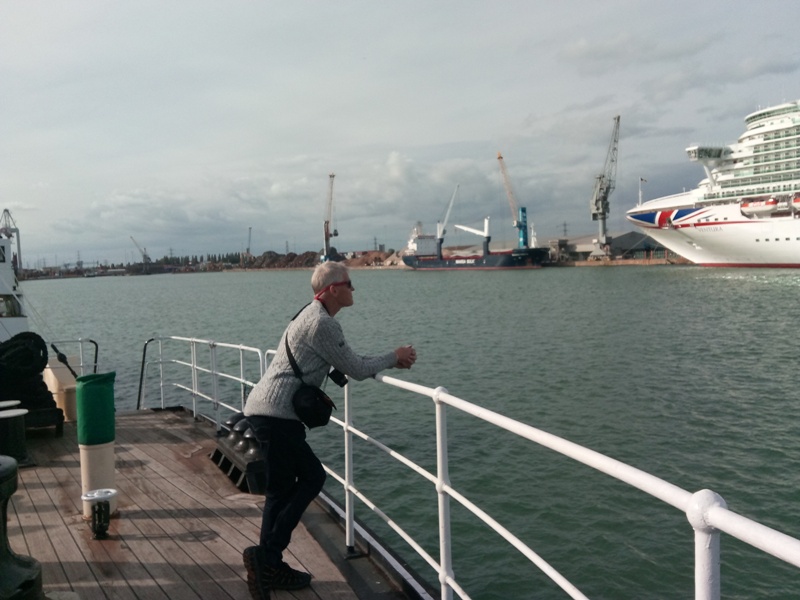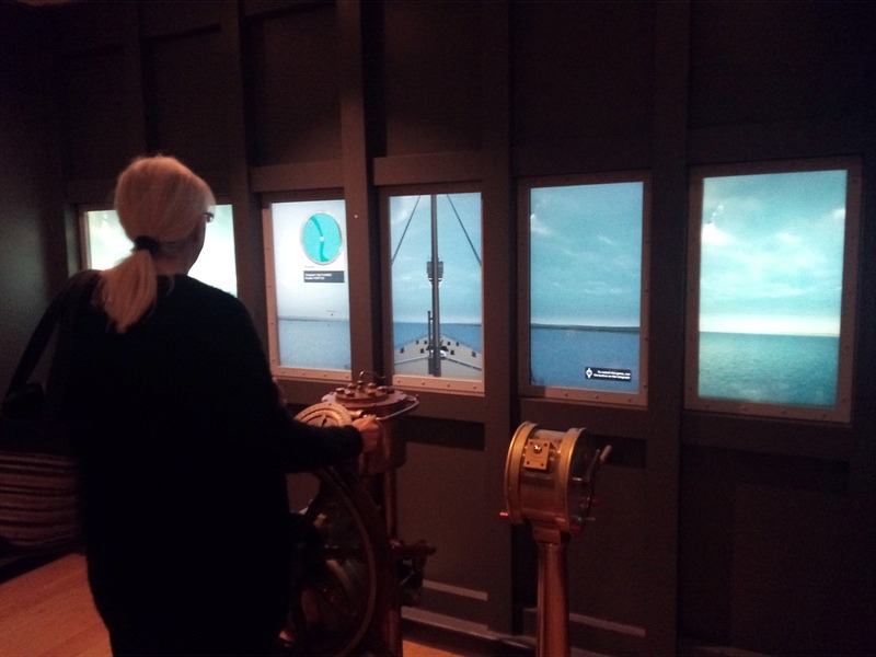 Jean steers Titanic down Southampton Water (the simulator - we're not that old)