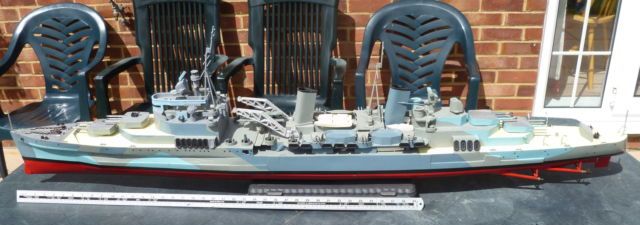 plane, fire directors, pompoms, new mast tops with rigging and cranes,