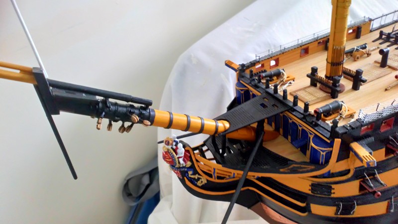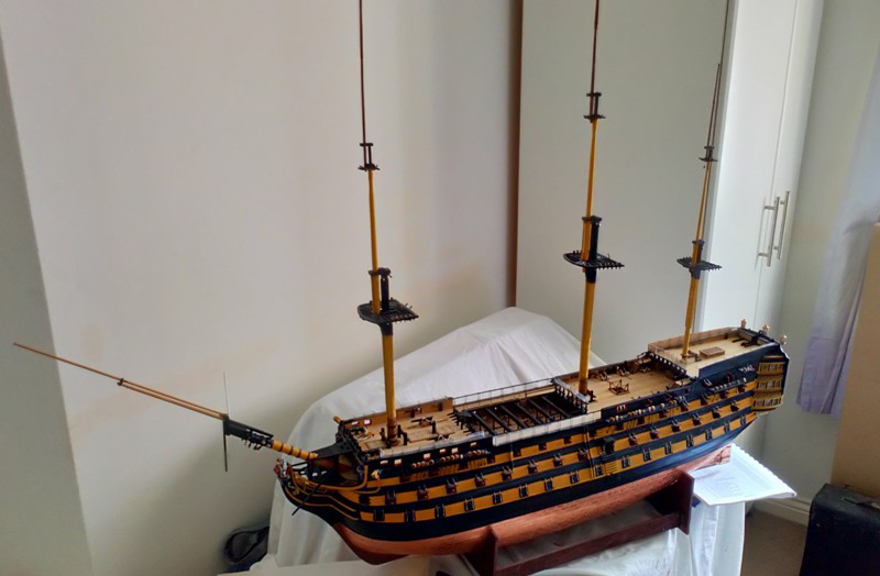 Just four years in the building, as and when the mood takes me, the Victory now has her masts and bow sprit.