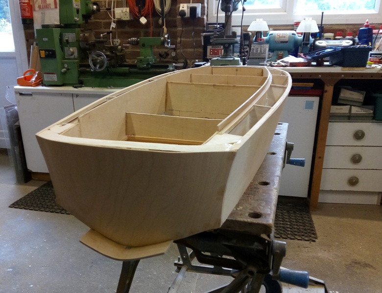 The flared hull sides requiring a double curvature are quite a challenge