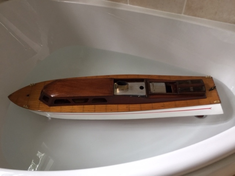 With sound deadening modifications of rubber mounting the motor and barriers made from a cork bath mat, all 5 foot 8 inches of the twice size Sea Commander now purrs around the lake
