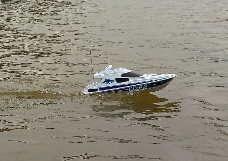 The club has been donated this 'Marlin' boat for visitors to have a go. It has 'proper' radio, a 540 motor and goes very nicely.
