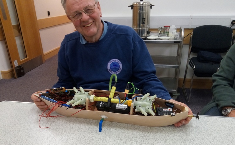 Mark's 'musical fountain boat' under construction. Seen here at the December club meeting