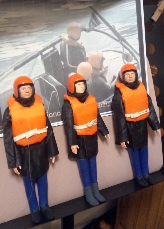 New heads with crash helmets, coats and (unfinished) lifejackets for Peter Twiss, Roger Clark and ?? Who was that third person in 1969?