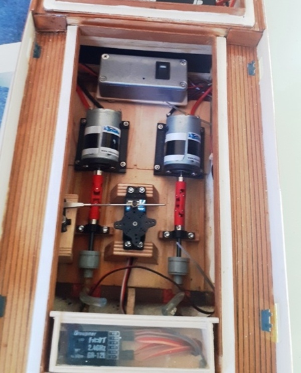I have made a dedicated compartment for the receiver, I was always worried I would get oil over it when I topped up the prop shaft lubrication tubes. It has a sliding Perspex lid for easy access.