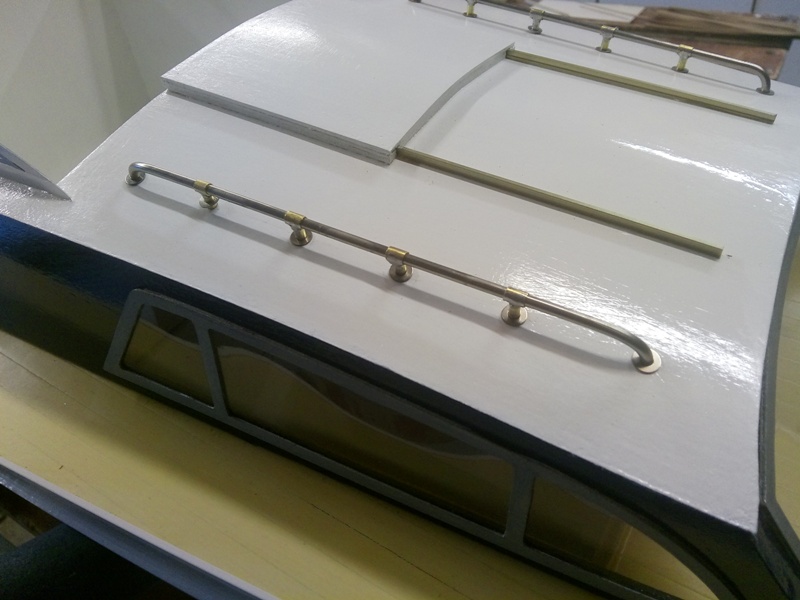 John Kerr has been soldering up the handrails for the Huntsman 31. First mill a jig from a block of wood.