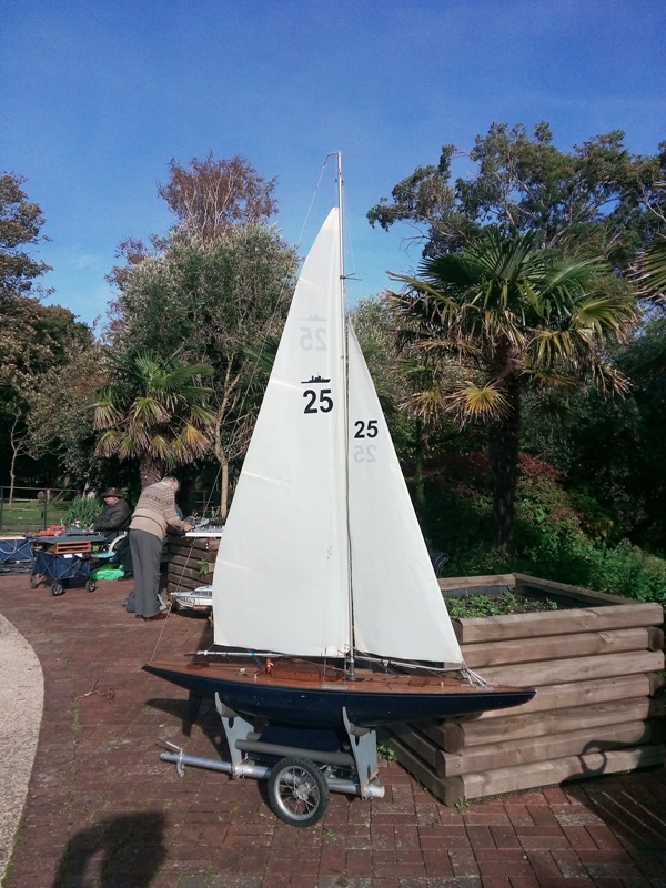 Barclay's motor sailer pictured here after a test. Its mast and sails having been removed for transporting home