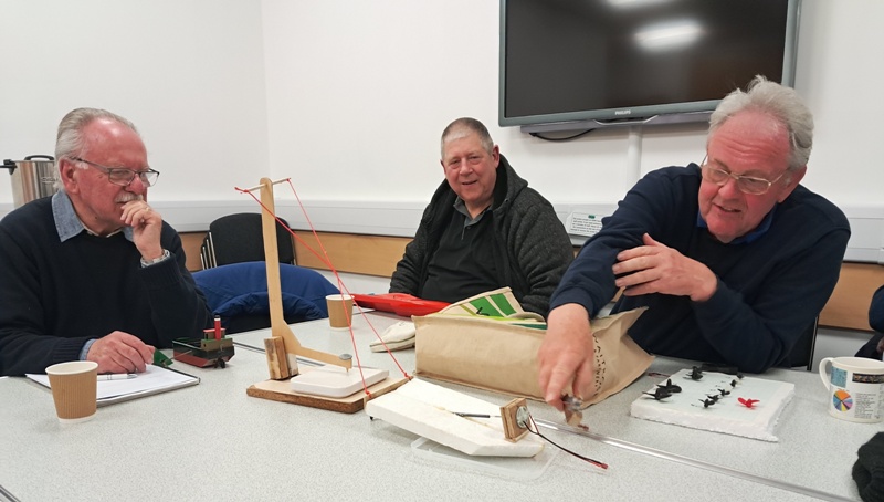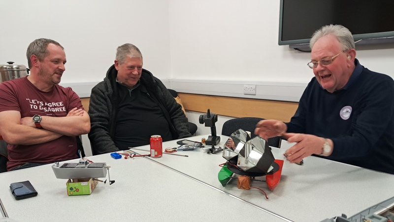 At the February meeting Mark explains focusing light onto solar panels using mirrors.