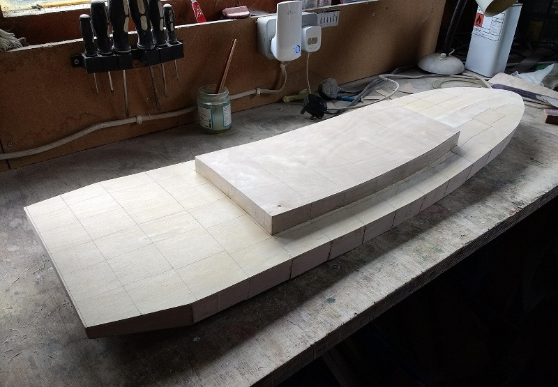 Chris J has restarted building a 46inch Huntsman 31 that has been 'resting' for 10 years. The side panels and bow blocks are now in place and the big question is whether to fit two motors or just one.