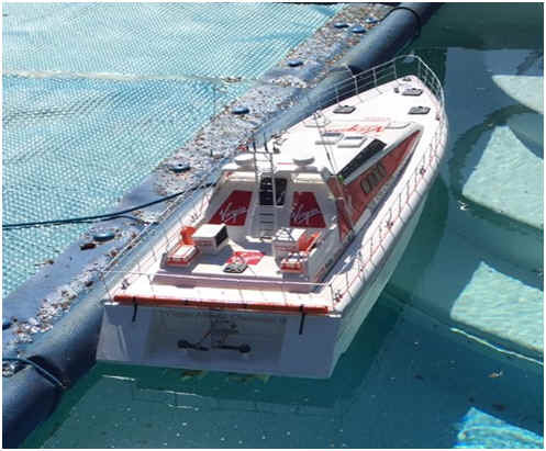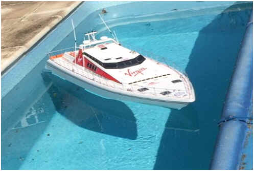 Since its first test it now only goes in a straight line! Various modifications will follow. As the Levi drive 'rudders' are out of the flow of water a throttle mixer is being tried.