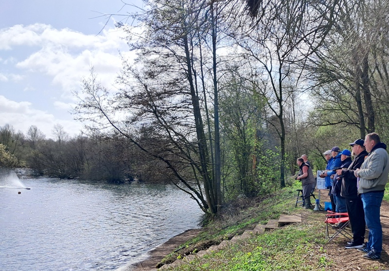 L to R Andrew U, Byron, Alan, Gordon, Malcolm, Albert, John (no waders) and Jeff. Jean took the photo