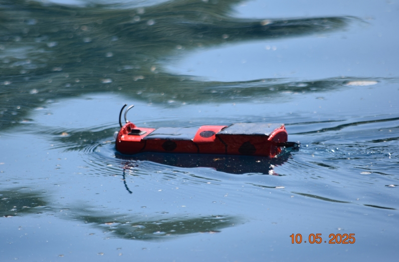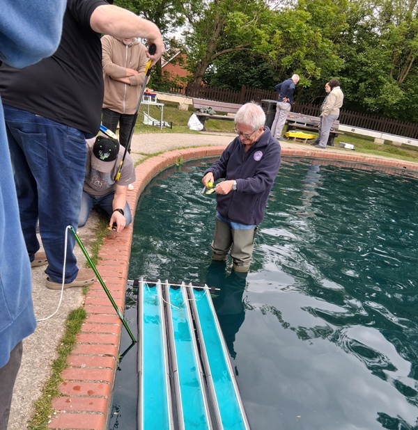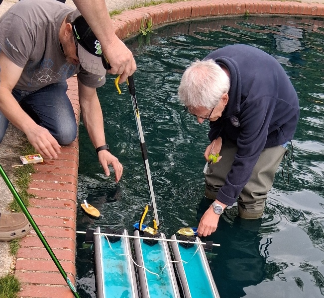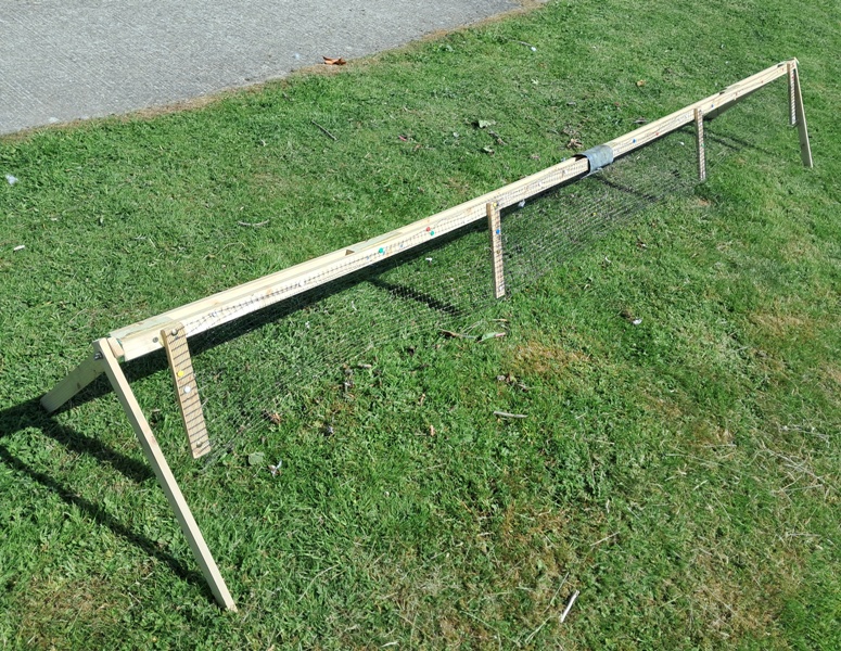 Device made by Mark to collect floating debris. The pond pump rotates the pond water. Putting this in the flow catches the debris.... do you get my drift?