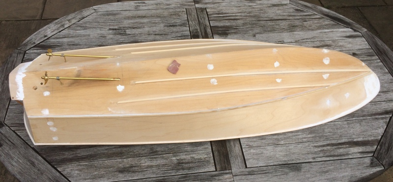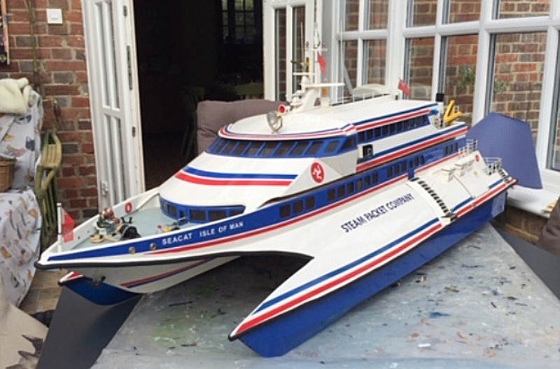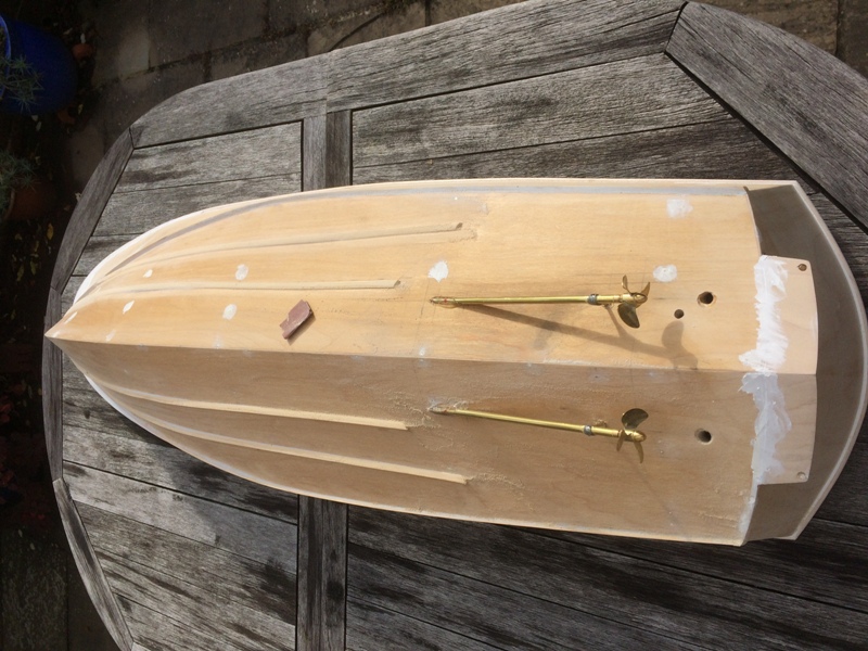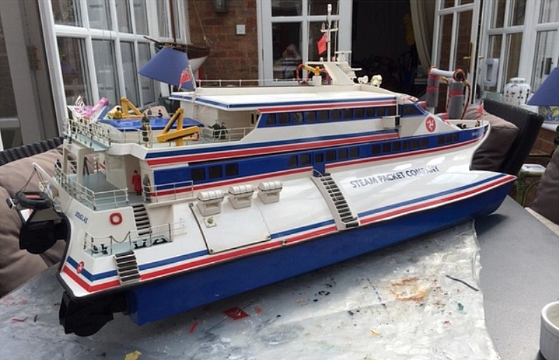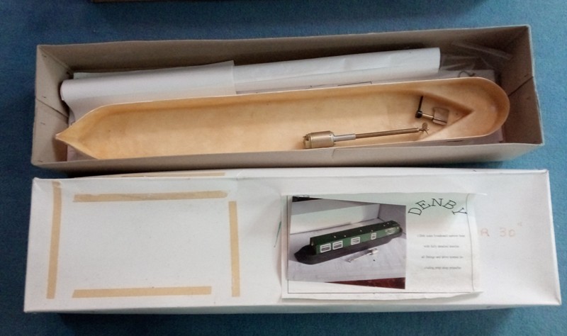 Unfortunately the DENBY kit below, although also 30 inches long, is a 1:20 scale model of a 50 footer and therefore not suitable. Converting this to a 1:24, 57 footer would mean taking out one half inch down the centre line of the fibreglass hull and the roof, lowering the superstructure and reshaping the ends! John has decided to make the second boat from scratch in wood instead.