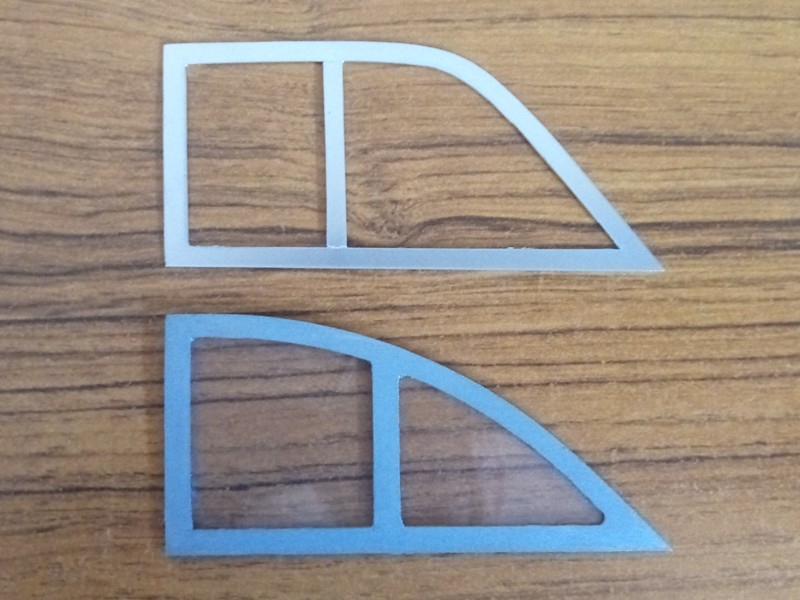 One of the replacement window frames he has made for his Huntsman 31. Above, the more correct shape, now made in plastic. Below, the rather weird wooden original as supplied in the kits.