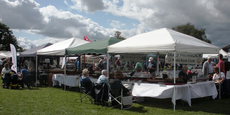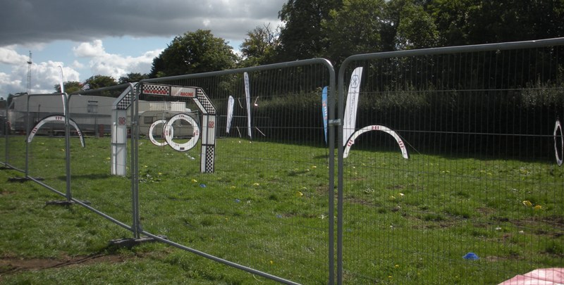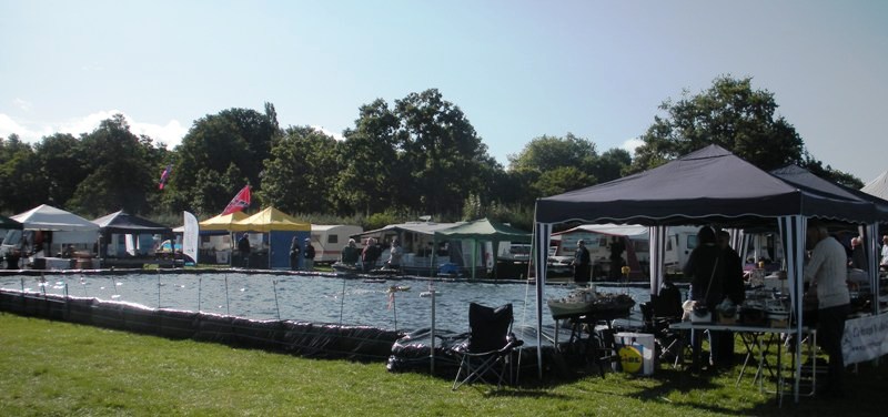 Setting up on our pitch. This year alongside the pond